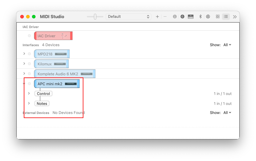 Connect the APCmini mk2 via USB before opening MiniStep. Once the app launches, the Volume and Stop All Clips buttons will light to confirm the connection. The virtual MIDI device appears in your DAW's input list immediately.
