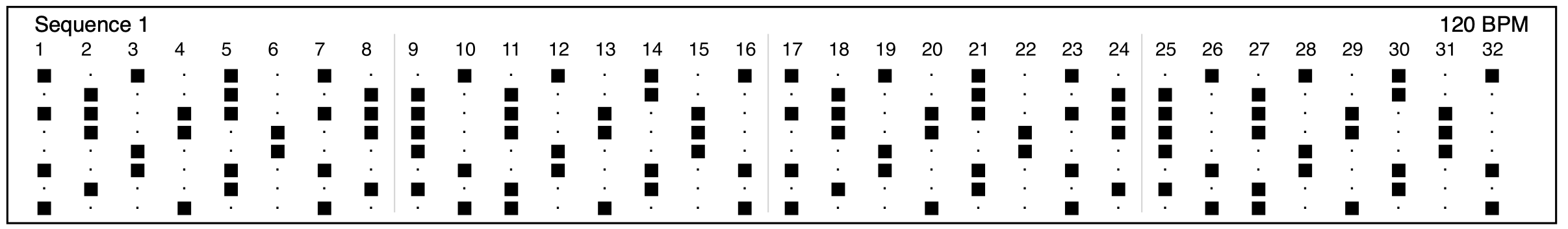 Printable sequence sheets. Generate a printed grid of any sequence or all eight at once — useful for session notes, collaboration, or just keeping a paper record of a pattern you like.