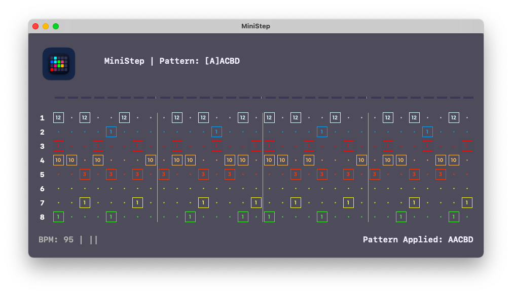 Most software treats MIDI controllers as remote controls for something else. MiniStep turns the APCmini mk2 into the instrument itself. You program steps directly on the pads, navigate pages with the page buttons, and chain patterns without ever touching a screen. When you do glance at the interface, it shows you exactly what's happening — nothing more.