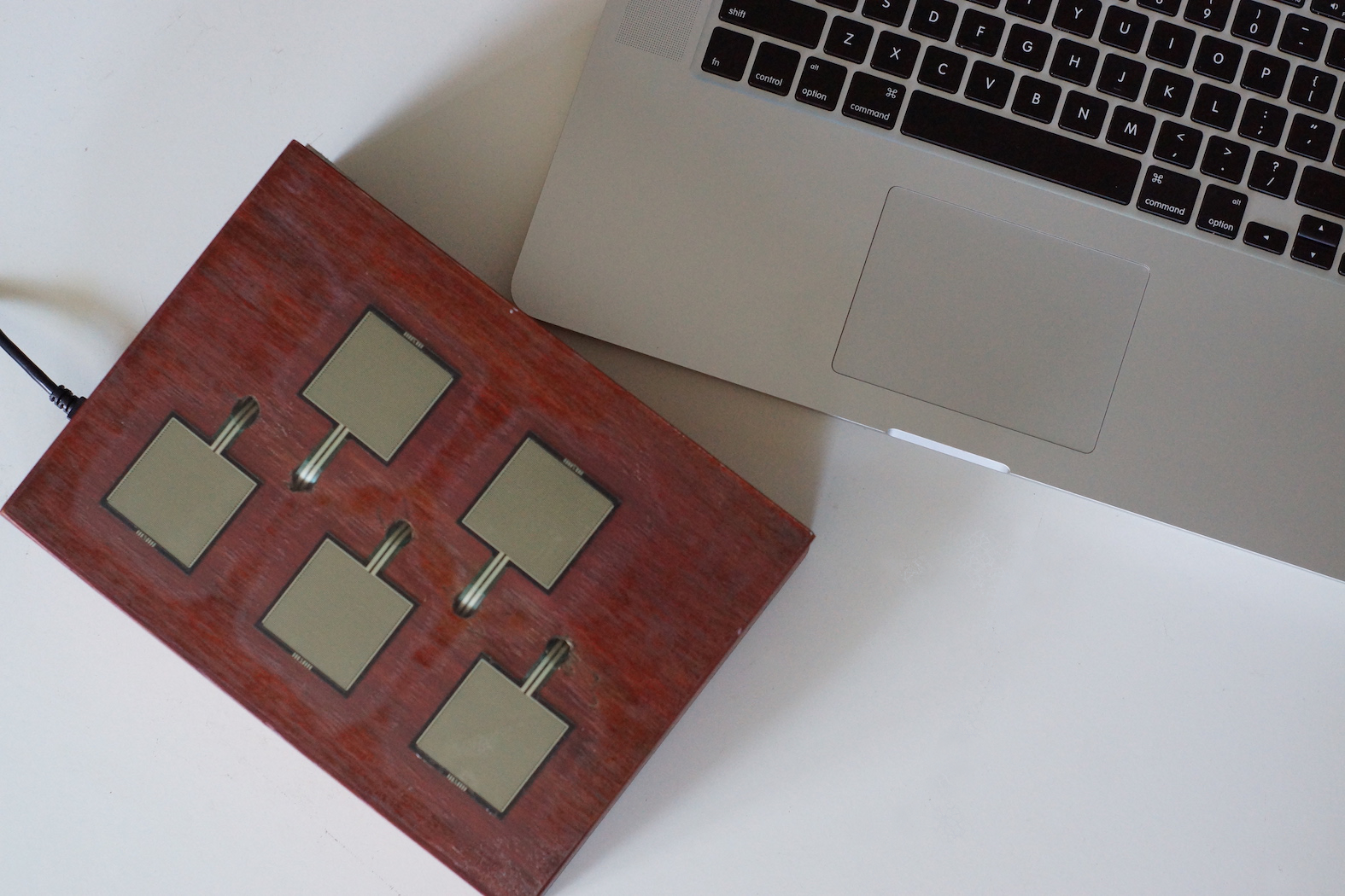 The Martbox is an Arduino based controller with five Force-Sensing Resistors that are very sensitive to pressure and can detect if a finger is slightly touching the surface of the sensor.
