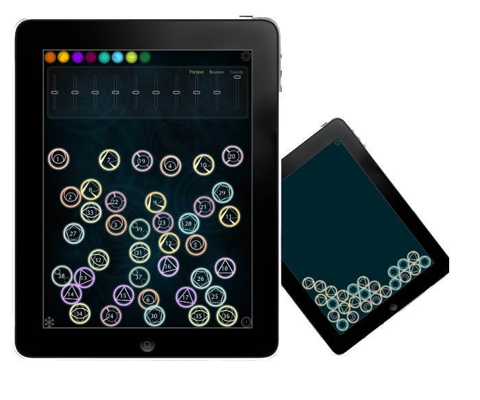 OSC Physics is a multitouch OSC control surface for the iPad. It emulates physics including collision detection, bouncing force, friction, gravity and more. It supports sending Open Sound Control (OSC) messages over a Wi-Fi network using the UDP protocol.