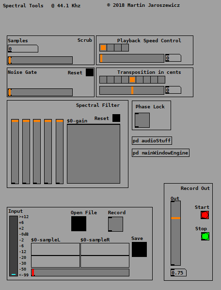 PD version of Spectral Tools. Freeze, time and pitch shifting, spectral eq, noise gate.